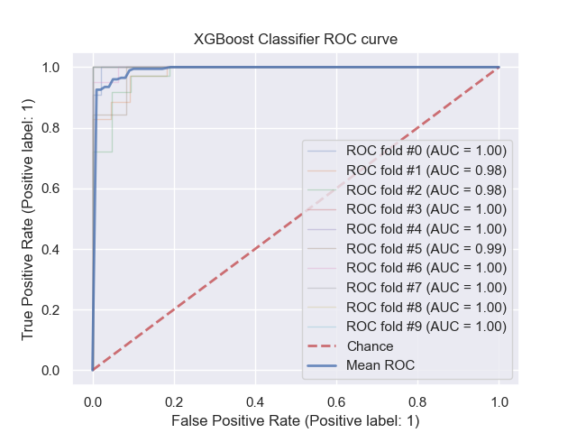I used Seaborn to create modern histograms of this dataset's feature distributions, as well as ROC curves for analyzing model performance. After determining that my XGBoost classifier was the most accurate, I tuned the model's hyperparameters for further optimization, resulting in a model with over 97% accuracy and over 96% precision (cross-validated on 10 folds).