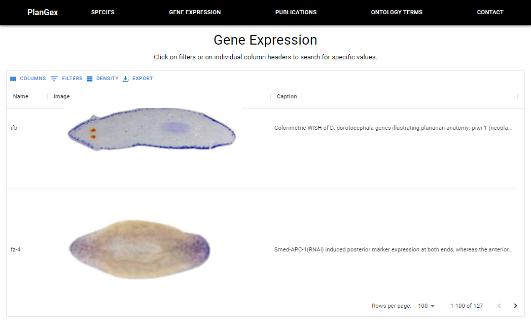 PlanGex is a genetic database CRUD application I built while volunteering as a research assistant and developer for UMBC's Lobo Lab. Plangex uses a REST API and a simplistic frontend to help lab members search through, sort, and organize data from our planarian worm genetics database.